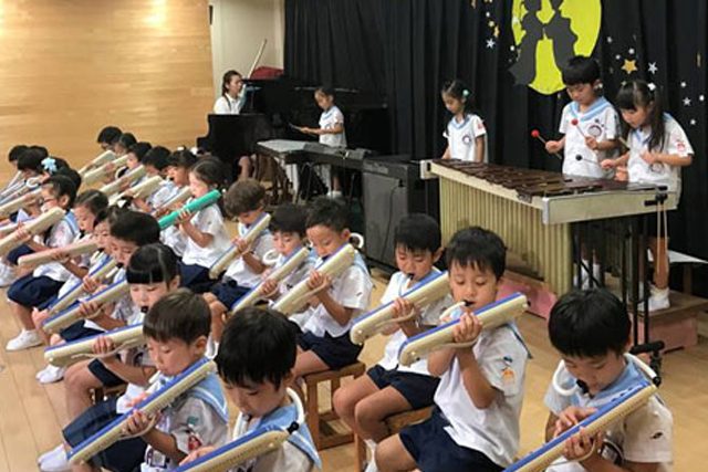 また、鍵盤ハーモニカをはじめ、さまざまな楽器に触れることで、音感やリズム感が少しずつ身についていきます。毎日こつこつと取り組み、はじめは難しかった曲も、いつの間にか弾けるようになっていくと共に、集中力は何か一つに取り組む力が身についていきます。